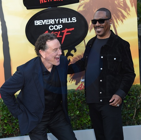 Judge Reinhold and Eddie Murphy arriving to the "Beverly Hills Cop: Axel F” world premiere held at The Wallis Annenberg Center for the Performing Arts on June 20, 2024 in Beverly Hills, Ca.© Lisa OConnor/AFF-USA.com