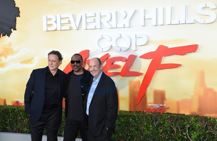 Judge Reinhold, Eddie Murphy and John Ashton arriving to the "Beverly Hills Cop: Axel F” world premiere held at The Wallis Annenberg Center for the Performing Arts on June 20, 2024 in Beverly Hills, Ca.© Lisa OConnor/AFF-USA.com