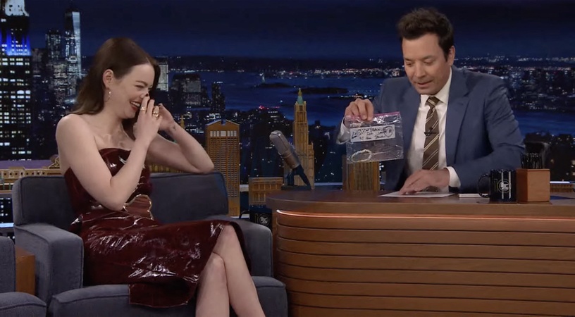 Emma Stone na planie „The Tonight Show Starring Jimmy Fallon” w Nowym Jorku