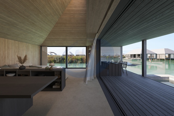 Pictures must credit: MAST A plan to turn a lagoon into a hotel concept with a cluster of chalets on stilts has been unveiled. The lagoon in Portugal, known as salina, was used for salt production dating back at least three hundred years. It was abandoned in the early 2000´s and has since become overgrown. The channels and ponds which wind around the 50 hectare site have since become breeding grounds for shrimp which attract flocks of flamingos and oystercatchers. Danish architecture company MAST has designed timber houses on stilts. The cabins were inspired by the traditional fisherman's huts and jetties which dot the lagoons and rivers of Southern Portugal. The cabins are accessible by foot using winding, elevated walkways or by boat or kayak and are being prefabricated off site reducing the impact of the construction on the delicate landscape. The dilapidated salt production building still on site will become a restaurant and spa. There will also be a new cluster of agricultural buildings inspired by traditional Portuguese wooden salt storage warehouses. Picture supplied by JLPPA