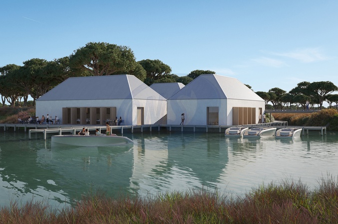 Pictures must credit: MAST A plan to turn a lagoon into a hotel concept with a cluster of chalets on stilts has been unveiled. The lagoon in Portugal, known as salina, was used for salt production dating back at least three hundred years. It was abandoned in the early 2000´s and has since become overgrown. The channels and ponds which wind around the 50 hectare site have since become breeding grounds for shrimp which attract flocks of flamingos and oystercatchers. Danish architecture company MAST has designed timber houses on stilts. The cabins were inspired by the traditional fisherman's huts and jetties which dot the lagoons and rivers of Southern Portugal. The cabins are accessible by foot using winding, elevated walkways or by boat or kayak and are being prefabricated off site reducing the impact of the construction on the delicate landscape. The dilapidated salt production building still on site will become a restaurant and spa. There will also be a new cluster of agricultural buildings inspired by traditional Portuguese wooden salt storage warehouses. Picture supplied by JLPPA