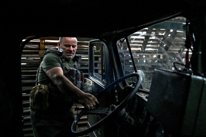 DONETSK REGION, UKRAINE - JUNE 12, 2024 - A serviceman of a rocket artillery battery of the 148th Separate Artillery Brigade of the Ukrainian Air Assault Forces gets behind the wheel of a BM-21 Grad multiple rocket launcher, Donetsk region, eastern Ukraine., Credit:Dmytro Smolienko / Avalon