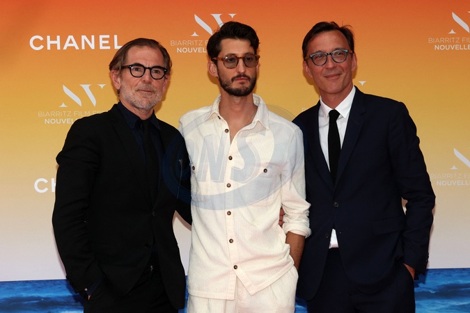 Matthieu Delaporte, Pierre Niney et Alexandre de la Patellière, le 21 juin 2024, au théatre de la Gare du Midi à Biarritz lors du Biarritz Film Festival - Nouvelles Vagues 2024. © Jean-Marc Lhomer / Bestimage