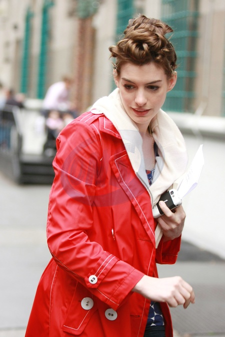Anne Hathaway na planie filmu "Bride Wars", Nowy Jork