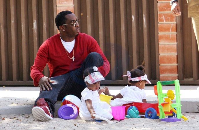 Sean 'P. Diddy' Combs z dziecmi w parku w Beverly Hills