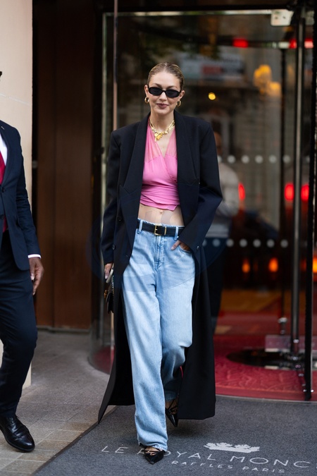 Gigi Hadid à la sortie de son hôtel le Royal Monceau à Paris