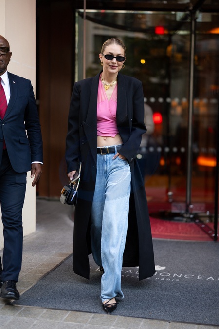 Gigi Hadid à la sortie de son hôtel le Royal Monceau à Paris