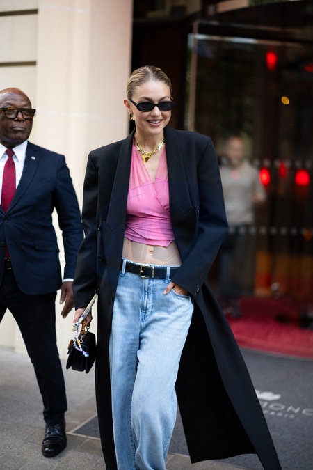 Gigi Hadid à la sortie de son hôtel le Royal Monceau à Paris