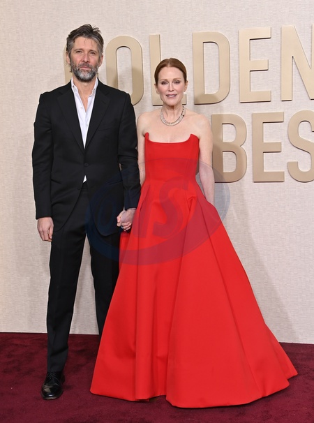 Julianne Moore and Bart Freundlich arriving at the 81st Golden Globe Awards held at the Beverly Hilton Hotel on January 7, 2024 in Beverly Hills, CA.© OConnor-Arroyo / AFF-USA.com