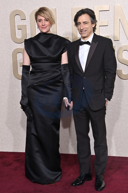 Greta Gerwig and Noah Baumbach arriving at the 81st Golden Globe Awards held at the Beverly Hilton Hotel on January 7, 2024 in Beverly Hills, CA.© OConnor-Arroyo / AFF-USA.com