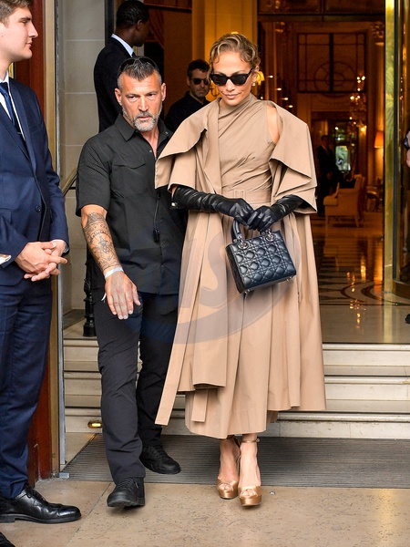 Jennifer Lopez (J.Lo) à la sortie de l'hôtel Le Meurice pour se rendre au défilé Christian Dior lors de la Fashion Week de Paris