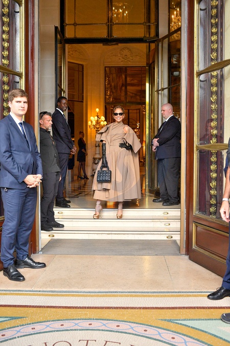 Jennifer Lopez (J.Lo) opuszcza hotel Le Meurice, aby udać się na pokaz Christiana Diora podczas Tygodnia Mody w Paryżu