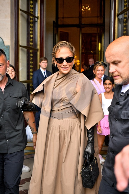 Jennifer Lopez (J.Lo) à la sortie de l'hôtel Le Meurice pour se rendre au défilé Christian Dior lors de la Fashion Week de Paris, France, le 24 juin 2024. © Pierre Perusseau/Bestimage Jennifer Lopez (J.Lo) leaves Le Meurice Hotel to attend the Christian Dior show during Paris Fashion Week in Paris, France on June 24, 2024.