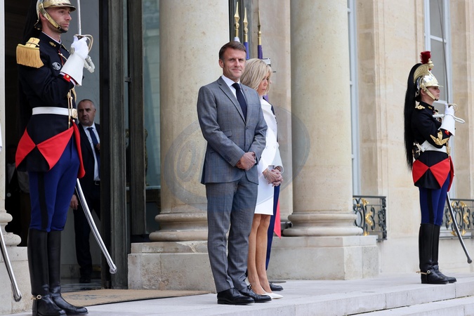 Le Président de la République française, Emmanuel Macron et la première dame Brigitte Macron reçoivent le Roi Abdallah II de Jordanie et la Reine Rania, pour un déjeuner de travail au Palais de l’Elysée à Paris