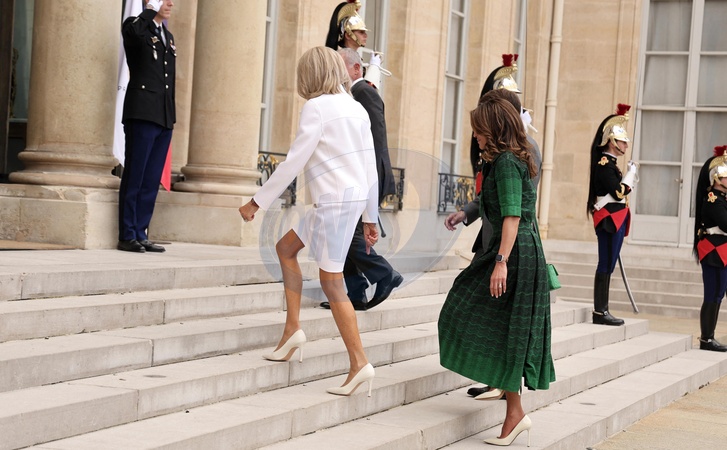 Le Président de la République française, Emmanuel Macron et la première dame Brigitte Macron reçoivent le Roi Abdallah II de Jordanie et la Reine Rania, pour un déjeuner de travail au Palais de l’Elysée à Paris