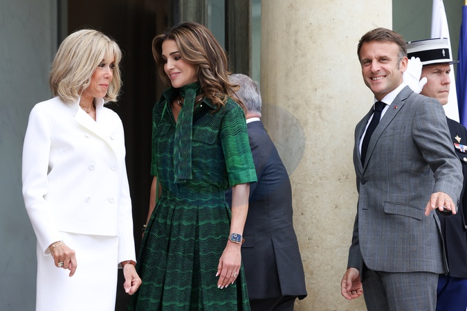 Le Président de la République française, Emmanuel Macron et la première dame Brigitte Macron reçoivent le Roi Abdallah II de Jordanie et la Reine Rania, pour un déjeuner de travail au Palais de l'Elysée à Paris, le 24 juin 2024. © Stéphane Lemouton / Bestimage The President of the French Republic, Emmanuel Macron and the first lady Brigitte Macron receive King Abdullah II of Jordan and Queen Rania, for a working lunch at the Elysée Palace in Paris, June 24, 2024.