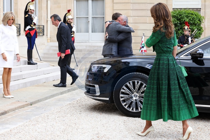 Le Président de la République française, Emmanuel Macron et la première dame Brigitte Macron reçoivent le Roi Abdallah II de Jordanie et la Reine Rania, pour un déjeuner de travail au Palais de l’Elysée à Paris