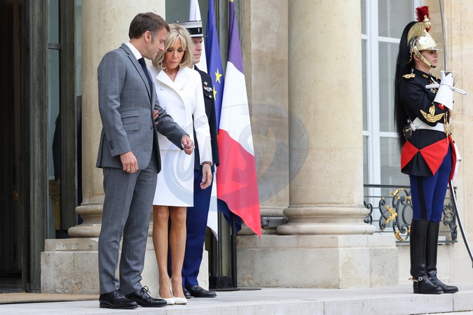 Le Président de la République française, Emmanuel Macron et la première dame Brigitte Macron reçoivent le Roi Abdallah II de Jordanie et la Reine Rania, pour un déjeuner de travail au Palais de l’Elysée à Paris