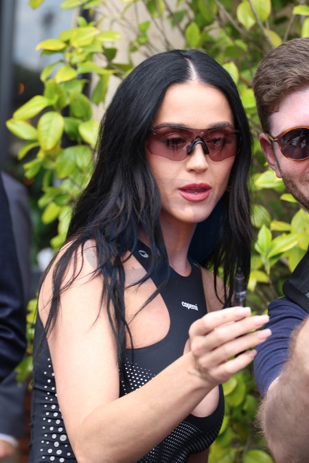 Katy Perry signe des autographes et fait des selfies avec ses fans à la sortie de son hôtel lors de la Fashion Week de Paris, le 24 juin 2024. © Denis Guignebourg / Bestimage Katy Perry signs autographs and takes selfies with fans as she leaves her hotel during Paris Fashion Week, June 24, 2024.