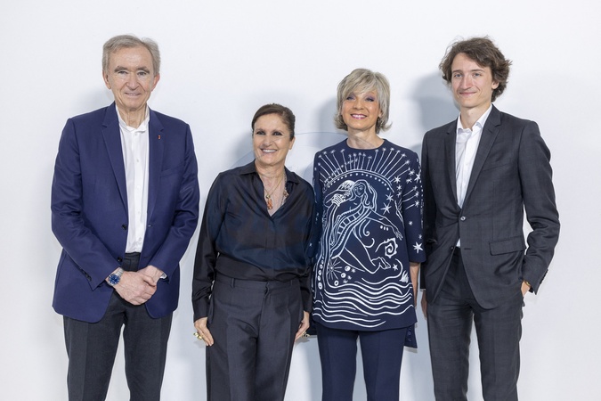 Exclusif - Bernard Arnault ,Maria Grazia Chiuri , Helene Arnault et Jean Arnault au greeting du défilé de mode Christian Dior Haute-Couture automne-hiver 2024/2025 lors de la Fashion Week de Paris, France, le 24 Juin 2024. © Olivier Borde/Bestimage No Web pour la Belgique et la Suisse Exclusive - Greetings after the Christian Dior Haute Couture Fall/Winter 2024/2025 show as part of Paris Fashion Week on June 24, 2024 in Paris, France.