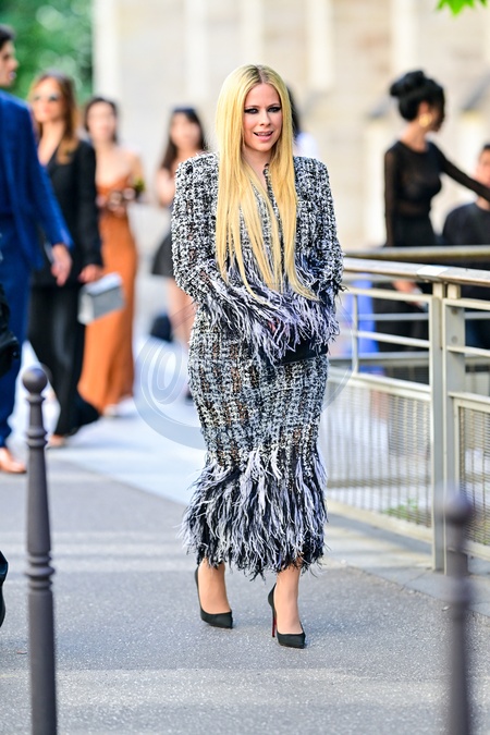 Avril Lavigne wychodzi z pokazu mody Tamara Ralph Haute-Couture jesień-zima 2024/2025 podczas Tygodnia Mody w Paryżu