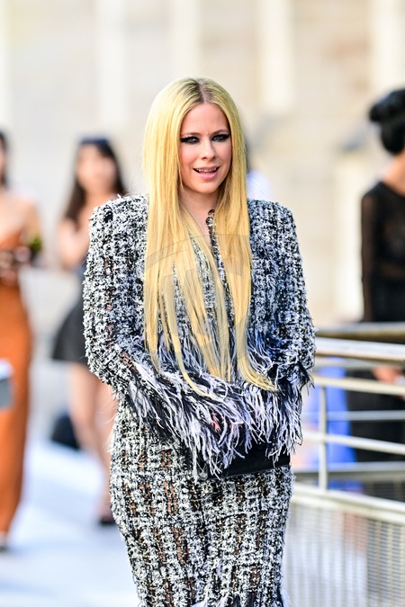 Avril Lavigne wychodzi z pokazu mody Tamara Ralph Haute-Couture jesień-zima 2024/2025 podczas Tygodnia Mody w Paryżu