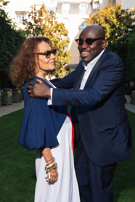 Diane Von Furstenberg et Edward Enninful au cocktail Vogue World dans les jardins du palace Ritz Paris en amont du défilé de mode Vogue World Paris Haute-Couture automne-hiver 2024/2025 lors de la Fashion Week de Paris, France, le 24 juin 2024. © Tiziano Da Silva/Bestimage Vogue World Cocktail in the gardens of the Ritz Paris palace ahead of the Vogue World Paris Haute-Couture Fall-Winter 2024/2025 fashion show during Paris Fashion Week