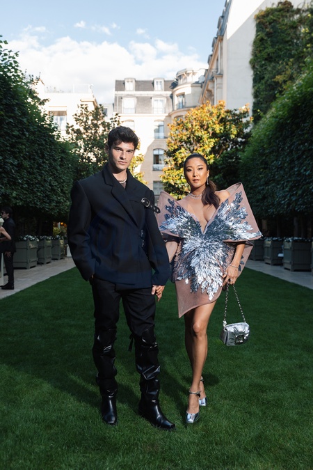 Paul Forman et sa compagne Ashley Park Lady actrice de Emily in Paris au cocktail Vogue World dans les jardins du palace Ritz Paris en amont du défilé de mode Vogue World Paris Haute-Couture automne-hiver 2024/2025 lors de la Fashion Week de Paris, France, le 24 juin 2024. © Tiziano Da Silva/Bestimage Vogue World Cocktail in the gardens of the Ritz Paris palace ahead of the Vogue World Paris Haute-Couture Fall-Winter 2024/2025 fashion show during Paris Fashion Week