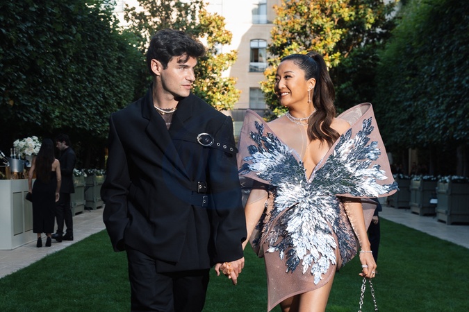 Paul Forman et sa compagne Ashley Park Lady actrice de Emily in Paris au cocktail Vogue World dans les jardins du palace Ritz Paris en amont du défilé de mode Vogue World Paris Haute-Couture automne-hiver 2024/2025 lors de la Fashion Week de Paris, France, le 24 juin 2024. © Tiziano Da Silva/Bestimage Vogue World Cocktail in the gardens of the Ritz Paris palace ahead of the Vogue World Paris Haute-Couture Fall-Winter 2024/2025 fashion show during Paris Fashion Week
