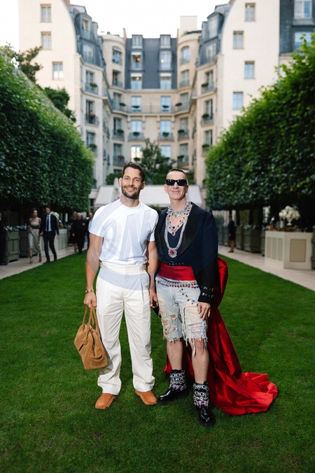 Simon Jacquemus et Jeremy Scott au cocktail Vogue World dans les jardins du palace Ritz Paris en amont du défilé de mode Vogue World Paris Haute-Couture automne-hiver 2024/2025 lors de la Fashion Week de Paris, France, le 24 juin 2024. © Tiziano Da Silva/Bestimage Vogue World Cocktail in the gardens of the Ritz Paris palace ahead of the Vogue World Paris Haute-Couture Fall-Winter 2024/2025 fashion show during Paris Fashion Week
