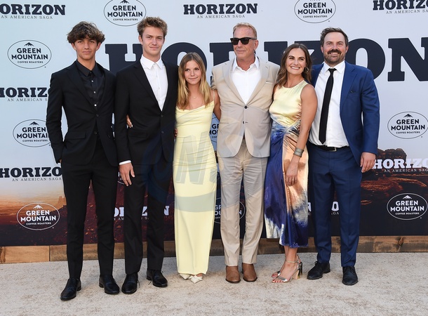 Hayes Costner, Cayden Wyatt Costner, Grace Avery Costner, Kevin Costner, Annie Costner and Joe Costner arriving to the "Horizon: An American Saga Chapter 1” Los Angeles premiere held at the Regency Village Theatre on June 24, 2024 in Westwood, Ca.© Lisa OConnor/AFF-USA.com