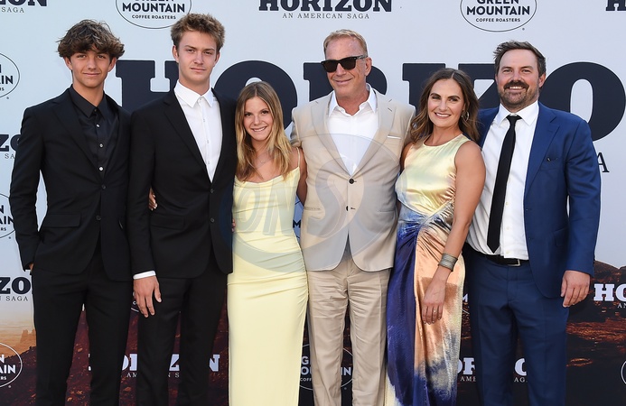 Hayes Costner, Cayden Wyatt Costner, Grace Avery Costner, Kevin Costner, Annie Costner and Joe Costner arriving to the "Horizon: An American Saga Chapter 1” Los Angeles premiere held at the Regency Village Theatre on June 24, 2024 in Westwood, Ca.© Lisa OConnor/AFF-USA.com