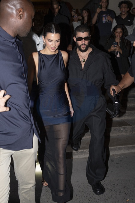 Kendall Jenner et son compagnon Bad Bunny à la sortie du restaurant "La Girafe" à Paris, à l'occasion de la fashion week de Paris