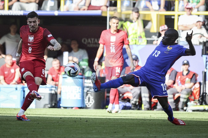 8 Moder Jakub MODER Midfield (POL) et 13 N'Golo KANTE Midfield (FRA) - Match de Championnat d'Europe de football opposant la France à la Pologne à Dortmund, Allemagne, le 25 juin 2024. © Elyxandro Cegarra/panoramic/Bestimage UEFA Euro 2024 Group D football match between France and Poland at the BVB Stadion in Dortmund on June 25, 2024.