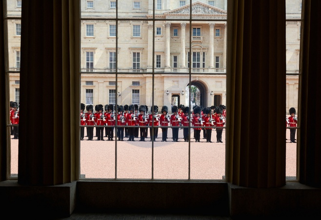 Guards line up, on the day of Japan's Emperor Naruhito and Empress Masako state visit, at Buckingham Palace in London, Britain, June 25, 2024., Credit:Suzanne Plunkett / Avalon