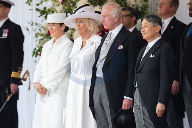 (L-R) - Empress Masako of Japan, Queen Camilla, King Charles III, Emperor Naruhito of Japan at a Ceremonial Welcome for the State Visit by The Emperor and Empress of Japan at Horse Guards Parade in London, England, UK on Tuesday 25 June, 2024., Credit:Justin Ng / Avalon