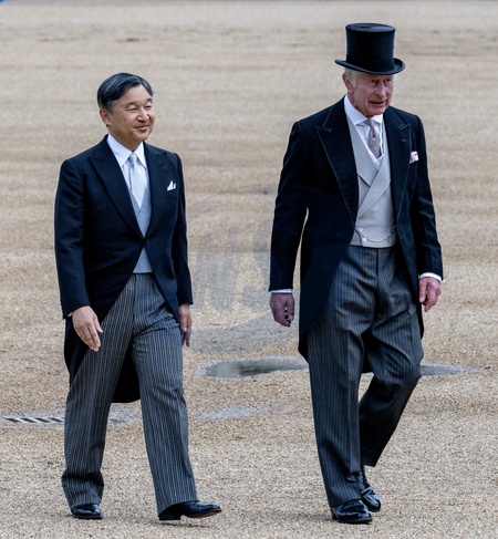 London, UK, 25 June 2024: King Charles III and the Japanese Emperor Naruhito at the Horse Guards at the start of the Japanese state visit in London., Credit:David Dyson / Avalon