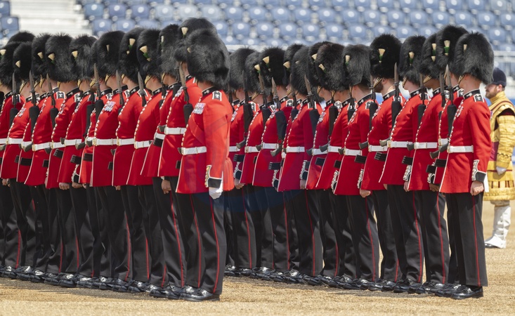 Horse Guards Parade, London, UK. 25th June 2024. Ceremonial welcome of Japanese Emperor Naruhito and Empress Masako on their State Visit to the UK. They are accompanied to the Royal Pavilion on Horse Guards by His Royal Highness The Prince of Wales. After the Guard of Honour give the Royal Salute and play the Japanese National Anthem, the Emperor and King Charles III inspect the Guard of Honour from the 1st Battalion Welsh Guards with the Band of the Welsh Guards. The Emperor and Empress then join The King and Queen, and The Prince of Wales, in a carriage procession along The Mall to Buckingham Palace., Credit:MALCOLM PARK / Avalon