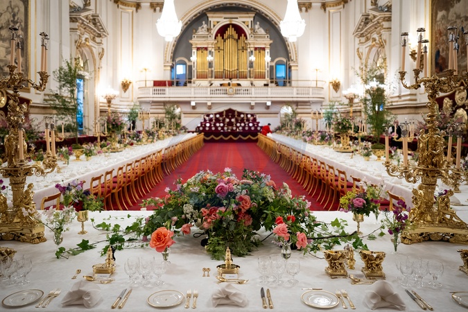 EMBARGOED TO 2030 TUESDAY JUNE 25Placements of the King, the Queen and The Emperor of Japan in Ballroom of Buckingham Palace, London, before the State Banquet for the State Visit by Emperor Naruhito and his wife, Empress Masako of Japan. Picture date: Tuesday June 25, 2024. PA Photo. See PA story ROYAL Japan. Photo credit should read: Aaron, Credit:Aaron Chown / Avalon