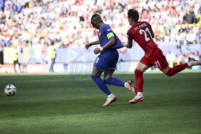 10 Mbappe Lottin Kylian MBAPPE Forward (FRA) et 21 Zalewski Nicola ZALEWSKI Midfield (POL) - Match de l'Euro 2024 opposant la France à la Pologne (1-1) à Dortmund le 25 juin 2024. Euro 2024 match between France and Poland (1-1) in Dortmund on 25th june 2024.
