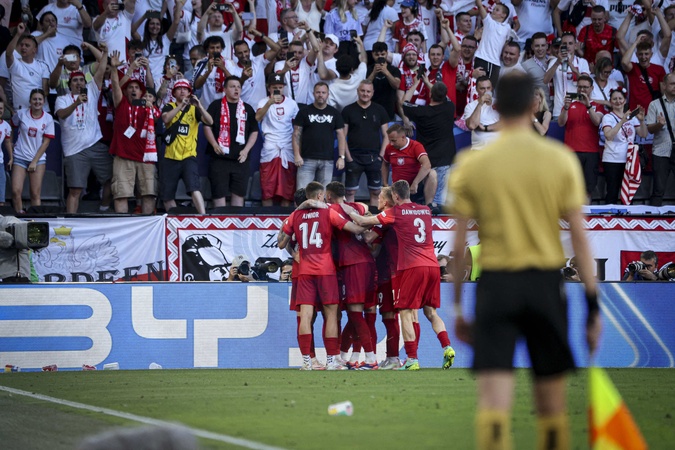 Joie des joueurs de Pologne apres le but de 9 Lewandowski Robert LEWANDOWSKI Forward (POL) - Match de l'Euro 2024 opposant la France à la Pologne (1-1) à Dortmund le 25 juin 2024. Euro 2024 match between France and Poland (1-1) in Dortmund on 25th june 2024.