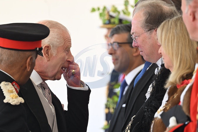 le roi Charles III d'Angleterre - Cérémonie d'accueil et trajet en calèche lors de la visite de l'empereur Naruhito du Japon à Londres le 25 juin 2024. © Photoshot / Panoramic / Bestimage Cérémonie d'accueil pour la visite d'État de l'empereur et de l'impératrice du Japon - Horse Guards Parade - Londres