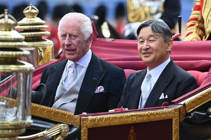 Ceremonia powitalna i przejażdżka powozem podczas wizyty cesarza Japonii Naruhito w Londynie
