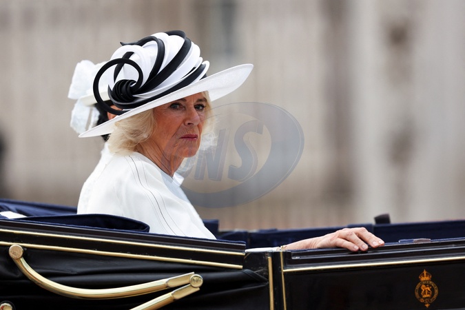 la reine consort Camilla - Cérémonie d'accueil et trajet en calèche lors de la visite de l'empereur Naruhito du Japon à Londres le 25 juin 2024. © Photoshot / Panoramic / Bestimage Japan's Empress Masako, accompanied by Britain's Queen Camilla, rides in a carriage on the day of a state visit, in London, Britain, June 25, 2024. NO UK USE FOR 48 HOURS, Credit:Avalon.red / Avalon Cérémonie d'accueil pour la visite d'État de l'empereur et de l'impératrice du Japon - Horse Guards Parade - Londres