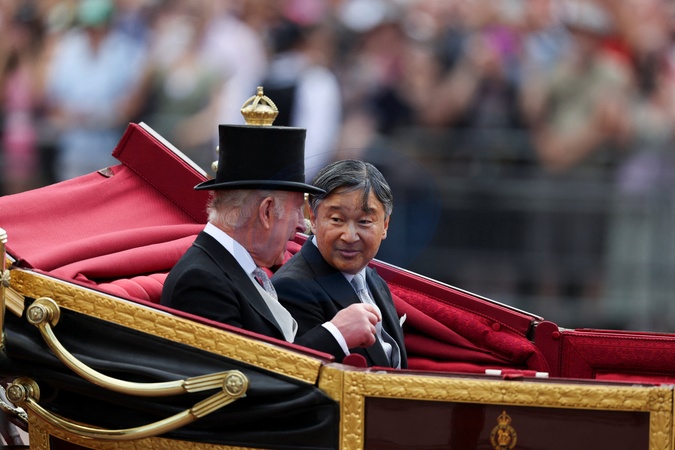 Ceremonia powitalna i przejażdżka powozem podczas wizyty cesarza Japonii Naruhito w Londynie