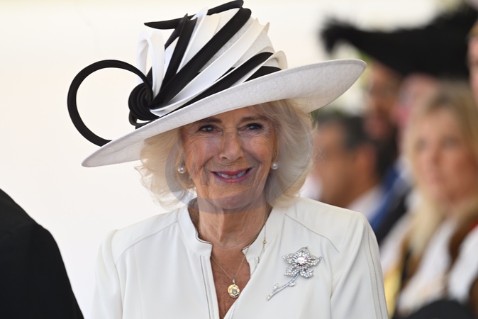 Cérémonie d'accueil et trajet en calèche lors de la visite de l'empereur Naruhito du Japon à Londres le 25 juin 2024. © Photoshot / Panoramic / Bestimage HRH Quenn Camilla, Japan's Emperor Naruhito and Empress Masako state visit, at Buckingham Palace in London, Britain, June 25, 2024., Credit:EDDIE MULHOLLAND for The Telegraph. / Avalon Cérémonie d'accueil pour la visite d'État de l'empereur et de l'impératrice du Japon - Horse Guards Parade - Londres