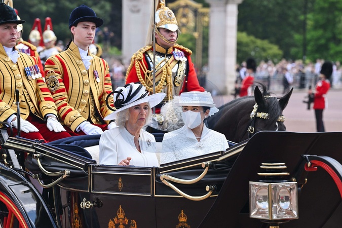 la reine consort Camilla et l'impératrice Masako du Japon - Cérémonie d'accueil et trajet en calèche lors de la visite de l'empereur Naruhito du Japon à Londres le 25 juin 2024. © Photoshot / Panoramic / Bestimage Cérémonie d'accueil pour la visite d'État de l'empereur et de l'impératrice du Japon - Horse Guards Parade - Londres