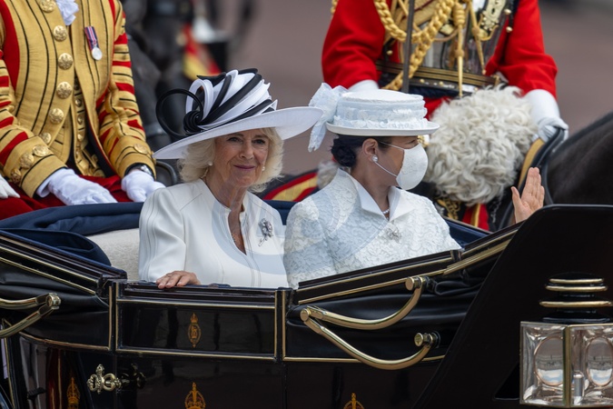 la reine consort Camilla et l'impératrice Masako du Japon - Cérémonie d'accueil et trajet en calèche lors de la visite de l'empereur Naruhito du Japon à Londres le 25 juin 2024. © Photoshot / Panoramic / Bestimage The Ceremonial Welcome of the Emperor and Empress of Japan during their state visit at the Horse Guards and Buckingham Palace. Emperor Naruhito and Empress Masako of Japan are beginning a three-day state visit to the UK. London. June 25 2024., Cérémonie d'accueil pour la visite d'État de l'empereur et de l'impératrice du Japon - Horse Guards Parade - Londres
