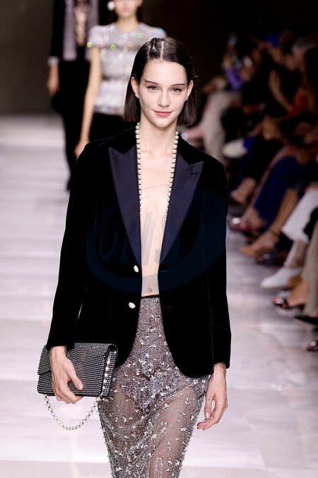Défilé de mode Haute-Couture automne-hiver 2024/2025 "Armani Privé” lors de la Fashion Week de Paris le 25 juin 2024. Armani Privé" Autumn-Winter 2024/2025 Haute Couture fashion show at Paris Fashion Week on 25 June 2024.