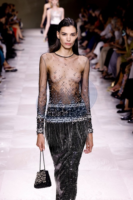 Défilé de mode Haute-Couture automne-hiver 2024/2025 "Armani Privé” lors de la Fashion Week de Paris le 25 juin 2024. Armani Privé" Autumn-Winter 2024/2025 Haute Couture fashion show at Paris Fashion Week on 25 June 2024.